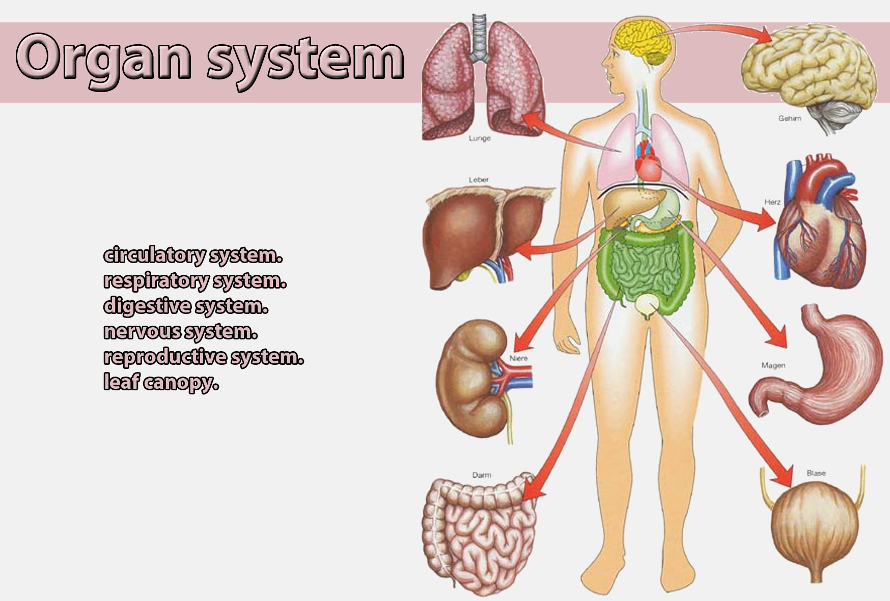 All organs of the body work in sync to form about a dozen organ systems. The lungs are one of the largest organs in the body, they work with the respiratory system to take in the line of bones down the centre of the back that provides support for the body. Cranial refers to features closer to the head a coronal or frontal plane divides the body into dorsal and ventral (back and front, or posterior and anterior) portions. The lungs take in oxygen and they expel carbon dioxide. The brain controls thoughts, memory and other organs.